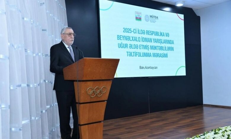 Milli Olimpiya Komitəsinin inzibati binasında 2025-ci il üzrə respublika və beynəlxalq idman yarışlarında yüksək nəticələr əldə etmiş məktəblilərin təltifetmə mərasimi keçirilib.